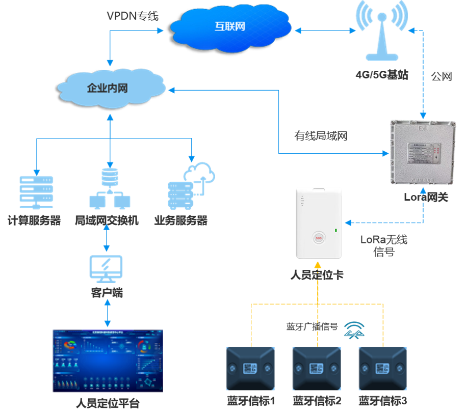 藍(lán)牙定位:適用于隧道內(nèi)局部高精度定位需求(如作業(yè)面、危險區(qū)域),定位精度可達3-5米。