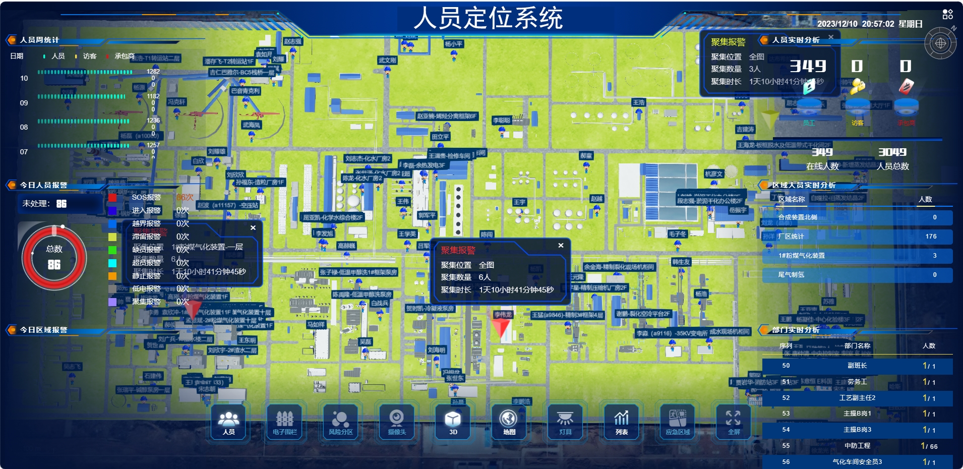安全是水電站運營的生命線,新銳科創人車定位系統從主動預警到應急救援,構建起全鏈條安全防護體系。針對水電站危險區域分布廣泛、傳統監管存在盲區的痛點,系統通過高精度定位基站實時捕捉人員與車輛位置信息,結合電子圍欄技術,為高壓電氣設備區、泄洪道、地下廠房等高危區域劃定虛擬邊界。當人員或車輛接近或試圖闖入危險區域時,系統可瞬間觸發預警機制,實現風險隱患的前置防控,從源頭上減少安全事故發生概率。