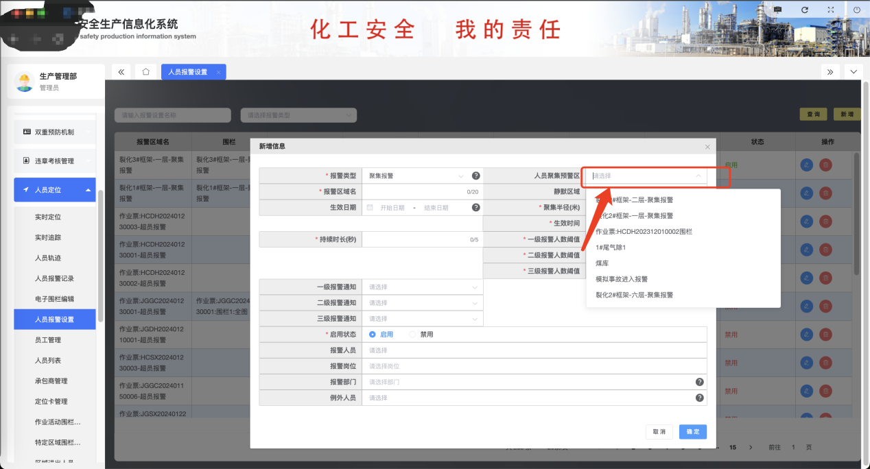系統支持電子圍欄功能,可以在電子地圖上圈定特定區域,并設置進入、離開、滯留、超員等多種報警類型。當有人員未經授權進入或離開圍欄區域時,系統會立即報警,確保礦山作業現場的安全。