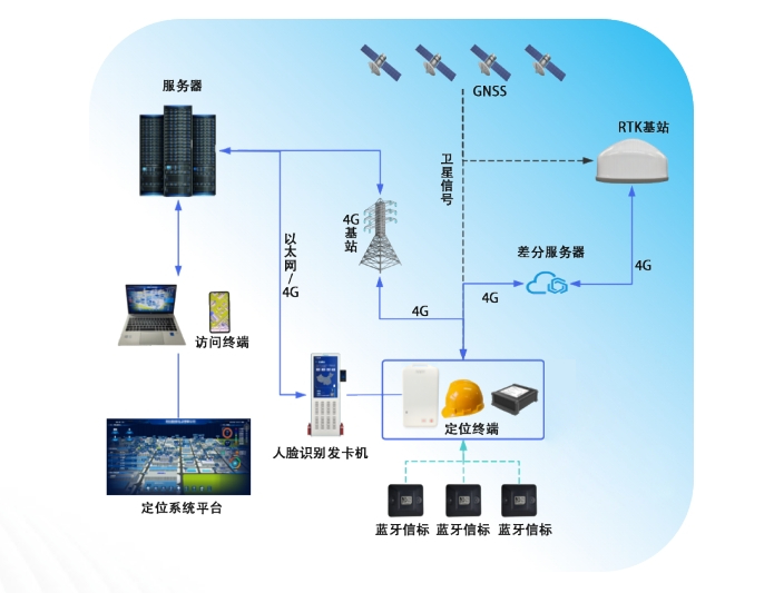 RTK(Real-Time Kinematic,實時動態差分技術)+藍牙+4G融合定位系統是一種集成了多種定位技術的先進解決方案,旨在實現室內外一體化高精度定位。該系統的核心在于將RTK技術、藍牙技術和4G通信技術有機融合,從而提供全面、精確且實時的定位服務。